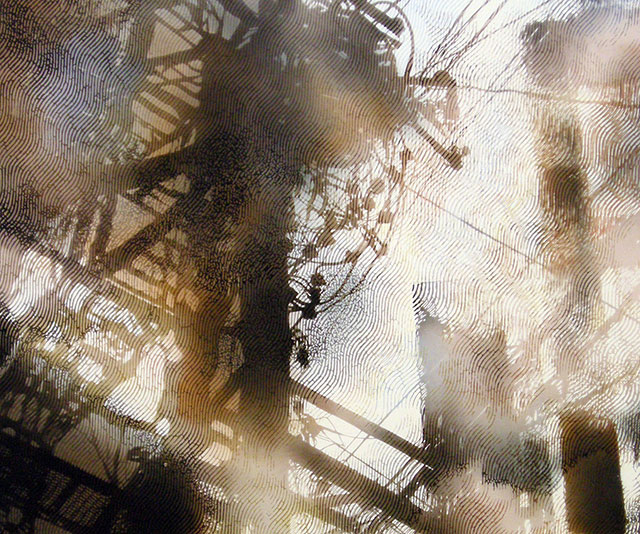 「うつりゆくあるひととき」をテーマに、型染めで表現しました。